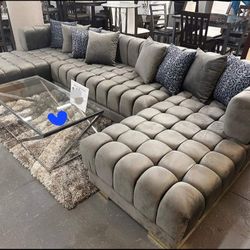 Neva Gray Velvet Double Chaise Sectional, Seccional, Couch// Delivery Available $2,420Dallas, TX