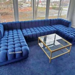 Blue Velvet Double Chaise Sectional/ Seccional,Couch// Delivery Available $2,300Dallas, TX