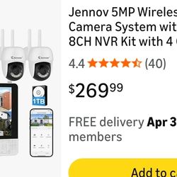 Jennov 5MP Wireless Security Camera System with Monitor – 8CH NVR Kit with 4 Outlet-Powered Cameras, 1TB HDD, Night Vision, Motion Detection, IP66, No$199Arlington, TX