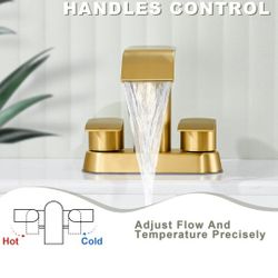 Bathroom Sink Faucet 3 Holes Black & Gold, Widespread Bathroom Faucet, Chrome Bathroom Faucet with Pop Up Drain, Bathroom Faucet with 304 Stainless St$45Alton, TX