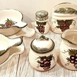 Set of 2 Vintage Alco Industries Ceramic Canister Cookie Jars Grapes Farmhouse$20Hargill, TX