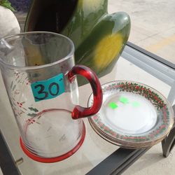 Vintage Xmas Glass Pitcher And Xmas Plates $30Palmview, TX