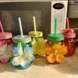 5 Flower Mason Jars With Lids & Straws$15Mcallen, TX