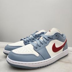 New Nike Air 1 Low sneaker in the "Sail/Dune Red-Blue Grey-White" colorway $60Weslaco, TX