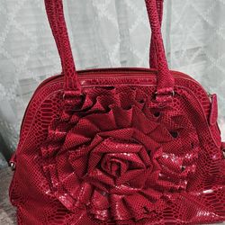 Red Burgandy crocodile-embossed satchel handbag with a rose detail$40Palmview, TX