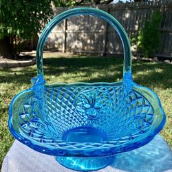 Large, Vintage, Blue Indiana Glass Cherries And Diamonds Basket$55Mcallen, TX