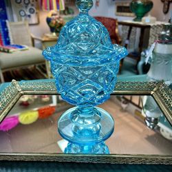 Vintage Aqua Mosser Summit Glass ‘Waffle & Dot’ Compote$36Mcallen, TX