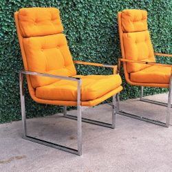 PAIR vintage midcentury modern chromecraft Orange chairs good condition $120Mcallen, TX