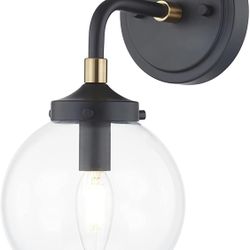 Glassland Vanity Lighting Fixture, 1 Light Wall Light in Black and Satin Brass with Clear Glass, The Vanity Lights Fixture and Globe Wall Sconce Perfe$23Pharr, TX