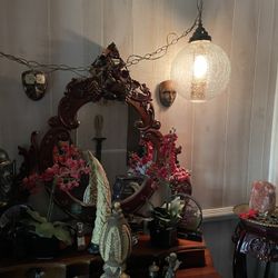 Antique Country Style Swag Lamp Glass shade Long chain W/Switch & plugs on wall $109San Juan, TX