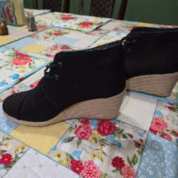 TOMS Wedge Closed Toe Black Canvas Booties Size Women's 7.5 W 7 1/2$25Alton, TX