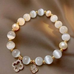 Cat's Eye Stone Four-Leaf Clover Crystal Bracelet, Elastic Rope, Lucky Bracelet Pulsera $12Palmview, TX