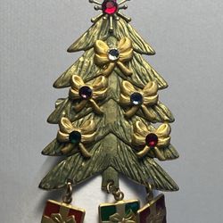 Vintage Christmas Tree With Bows Gift Rhinestone Gold Tone Brooch Pin$30Edinburg, TX