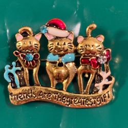 CLASSIC CHRISTMAS PIN FRIENDS ARE THE GREATEST GIFT KITTIES CATS BROOCH PIN$10Mcallen, TX