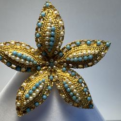 VTG Sarah Coventry Gold Tone Faux Pearls & Turquoise Star Fish Brooch 2.25”$15Edinburg, TX