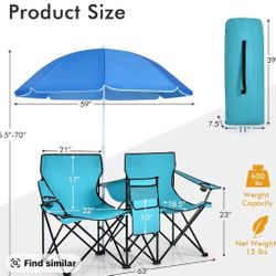 Double Portable Picnic Chairs, Folding Camping Chairs w/Detachable Umbrella, Cooler Bag, Cup Holders, Patio Beach Camping Chairs for Outdoors-$90Palmview, TX