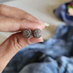 GORGEOUS SK9 1/10TCW DIAMOND HALO STERLING SILVER 925 ROUND STUD EARRINGS$75Palmview, TX
