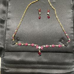 18k Gold Plated Emerald Heart Necklace And Earring Set$77Edinburg, TX