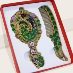 1 Set Vintage Mirror Comb Set, Peacock Embossed Vanity Makeup Mirror Travel Portable Cosmetic Mirror Decorative Beauty Mirror, for Mom Women$25Palmview, TX