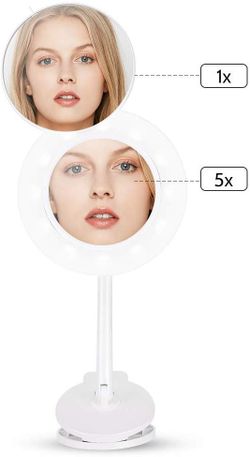 Lighted Makeup Mirror Rechargeable LED Wall Mounted Vanity Mirror Portable Clip Fill Light for Mobile Phone, with 5X Magnification Mirror$25Mission, TX