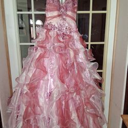 Pink Beaded Quince Dress With Petticoat. Size 5. For $200 or best offer. (Donna)$200Alamo, TX