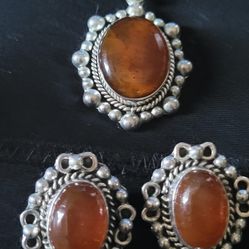 Orange Stone Silver Clip On Earrings $40Edinburg, TX