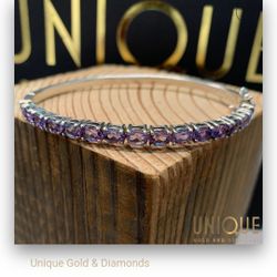 Sterling Silver Purple Cubic Zirconia 925 Hinged Bangle Bracelet Size 7-1/2$75Palmview, TX
