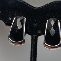 Vintage Clip On Earrings Elongated Black Faceted Gem Silver Tone Halo$15Edinburg, TX