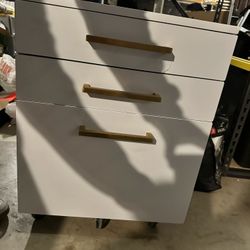 white salon styling station cabinet with gold-toned handles. $40Cross Roads, TX