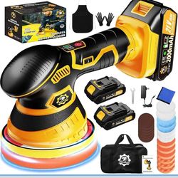 Cordless Car Buffer Polisher kit [2x 2000mAh 21V Batteries & 18 PCS Attachments] 6-Speed Orbital Design, LED Display, Lightweight Detailing Tool for W$30Garland, TX