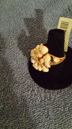 Flower ring - size 7/white w/gold tone and rhinestone in the center$15Mesquite, TX