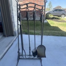 Vintage Metal Fireplace 4 Pc Tool Set - Stand Tongs Poker Brush Shovel$100Princeton, TX