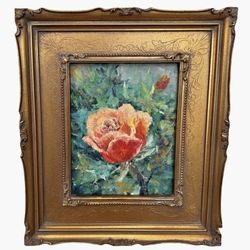 Abstract Expressionist Flower Painting Gold Framed Contemporary Floral Art Small$65Lucas, TX
