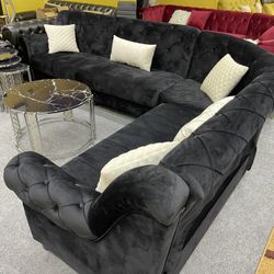 New In The Box Black Velvet Living Room Sectional Sleeper - Delivery And Financing Available $1,545Dallas, TX