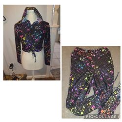 Love Star Black with Neon Pant Splatter Rouched Cropped Hoodie and Leggings Set$19Odessa, TX