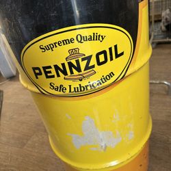 VTG PENNZOIL SAF LUBRICATION 120lb OIL GAS DRUM BARREL CAN TRASH GARAGE SHOP$100Odessa, TX