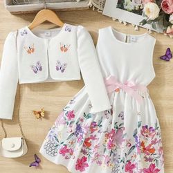 2 Pieces Floral Tank Dress And Graphic Cardigan Top Set, For 9 or 10 years old girls$45Odessa, TX