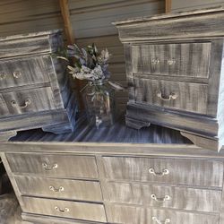 Farm House Style Long Dresser 2 Night Stands Grey With White Wash$200Odessa, TX