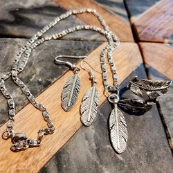 Feather Necklace Earrings Ring Set$45Odessa, TX