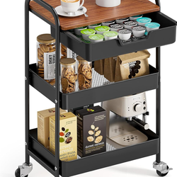 TOOLF 3-Tier Utility Rolling Cart with Wooden Board and Drawer, Metal Storage Cart with Handle, Black Trolley Kitchen Organizer Rolling Desk with Lock$35Arlington, TX