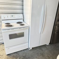 Combo Kenmore fridge and whirlpool stove electric side-by-side white refrigerator with a smooth finish color . No water or ice maker. $725Euless, TX