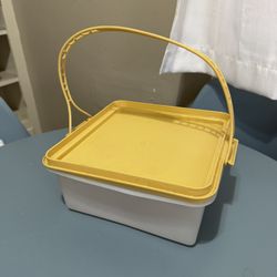 Vtg Tupperware Square/Rectangl Cake/Cup Cake Carrier Harvest Gold/Sheer w/Handle$20Fort Worth, TX