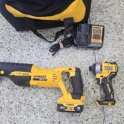 NEW DEWALT 20V SAWZAW AND BRUSHLESS IMPACT WITH 5.0 BATTERY AND CHARGER IN BAG FOR 215$$215Haltom City, TX