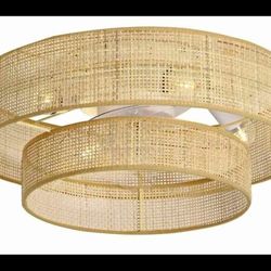 0468: NEW 20" Bamboo Flush Mount Ceiling Fan with Light and Remote Control.Boho Chic Wicker Rattan Caged Fandelier for Bedroom Indoor Kitchen