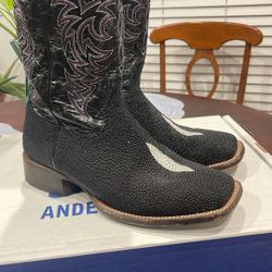 91/2EE-AB MEN'S GRANITE AND BLACK SQUARE TOE COWBOY BOOT-9 1/2 EE$500Cedar Hill, TX