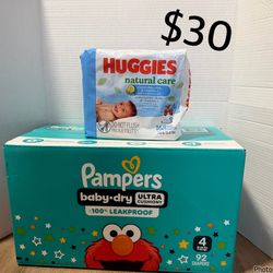 Pampers size 4 & Huggies wipes $30Mesquite, TX