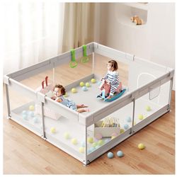 ZEEBABA 69×59in Baby Playpen, Large Playpen for Babies and Toddlers, Transparent Mesh, No-Tool Installation, Gray with Door, Sturdy Steel Frame, Separ$40Arlington, TX