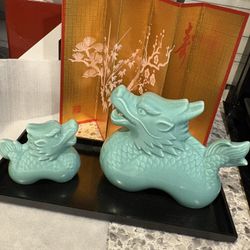 turquoise ceramic Japanese Zodiac dragon figurine set$20Crowley, TX