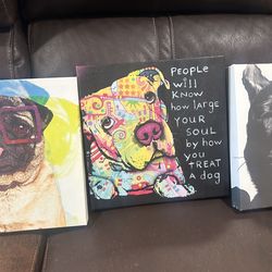 Set of 3 dog portraits on canvas:12x12” very good condition. Like new$35Fort Worth, TX