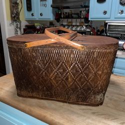 Large Antique Redmon Wicker Picnic Basket$25Red Oak, TX